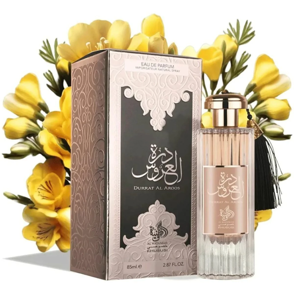 O Durrat Al Aroos da Al Wataniah é uma verdadeira joia da perfumaria oriental, ideal para mulheres que valorizam elegância, delicadeza e sofisticação. Com um frasco refinado e detalhes em dourado rosado, essa fragrância exala charme desde o primeiro olhar.