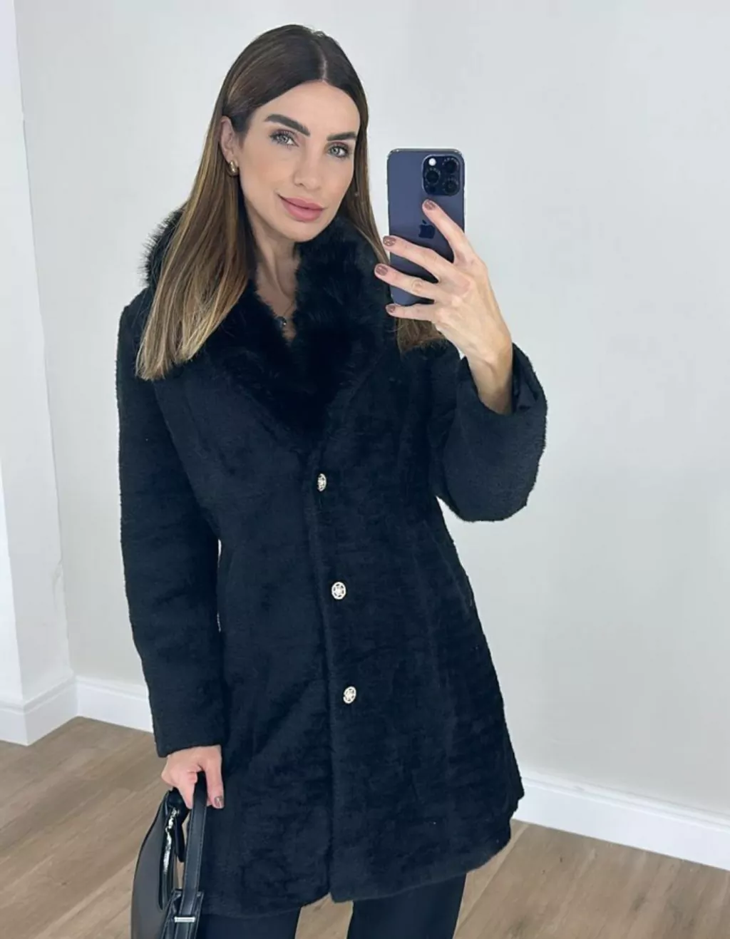 Gola removível de pelo sintético macio, para um toque extra de charme e versatilidade;