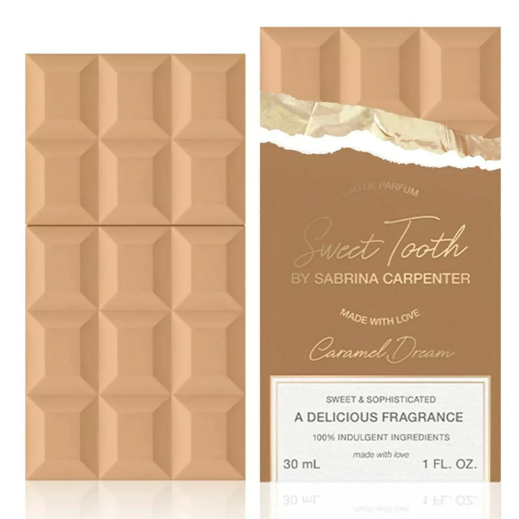 O Sweet Tooth Caramel Dream by Sabrina Carpenter é uma deliciosa fragrância feminina que une doçura e sofisticação em uma composição irresistível. Com seu frasco em formato de barra de chocolate na cor caramelo e detalhes elegantes em dourado, ele encanta tanto pela aparência quanto pelo aroma gourmand envolvente.